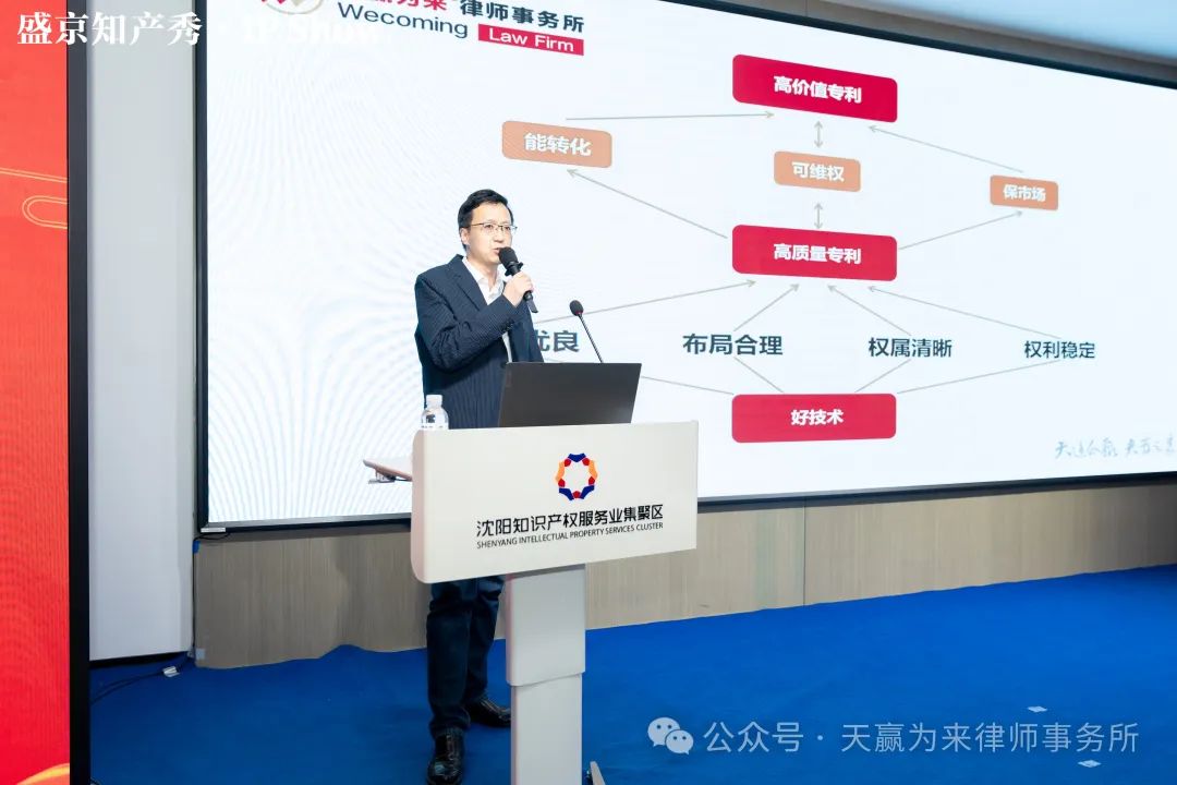 天赢为来律师事务所主任石铁岩律师在沈阳市知识产权集聚区提供“维权视角谈高价值专利保护要点”主题分享丨天赢为来知识产权律所
